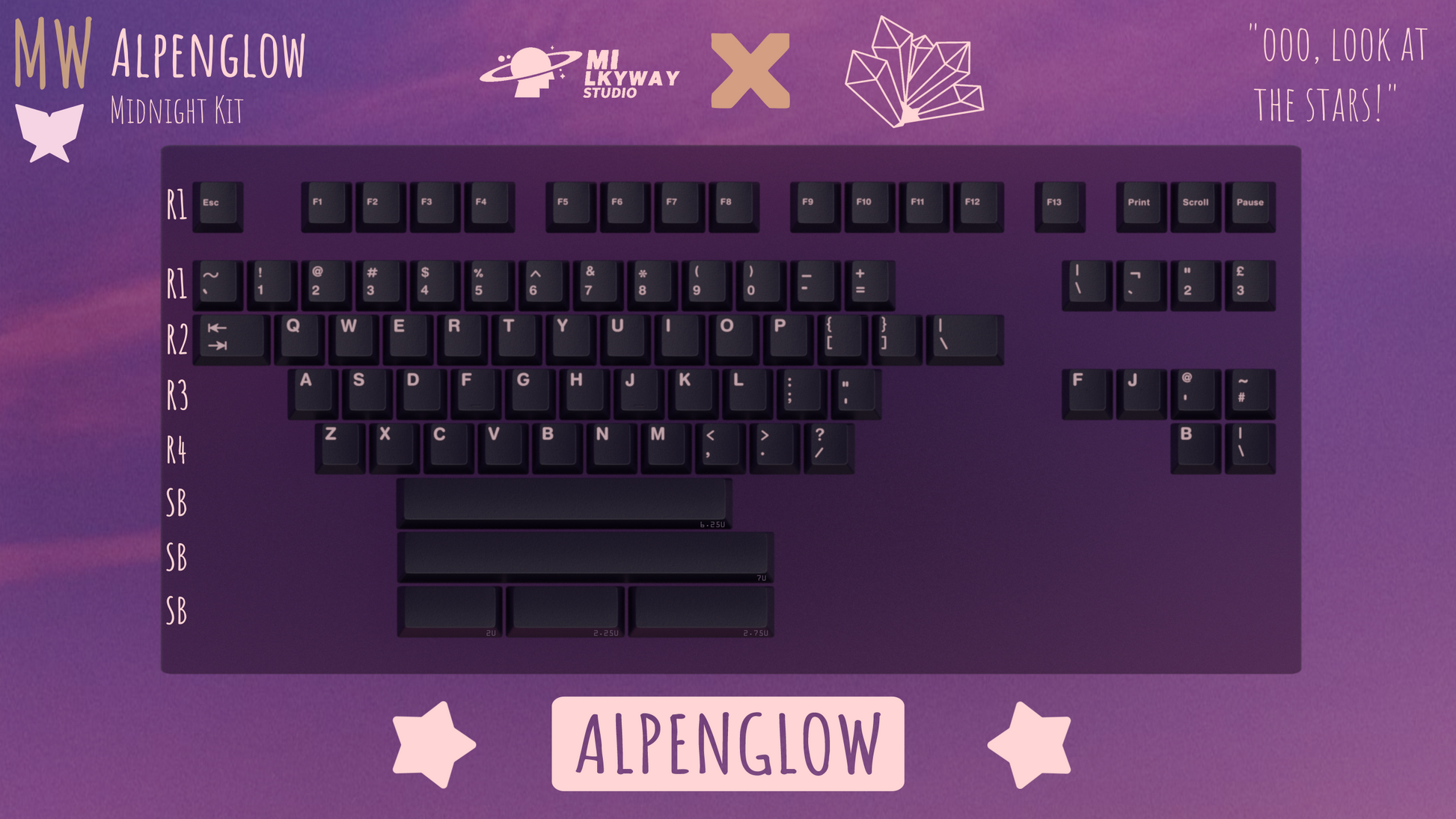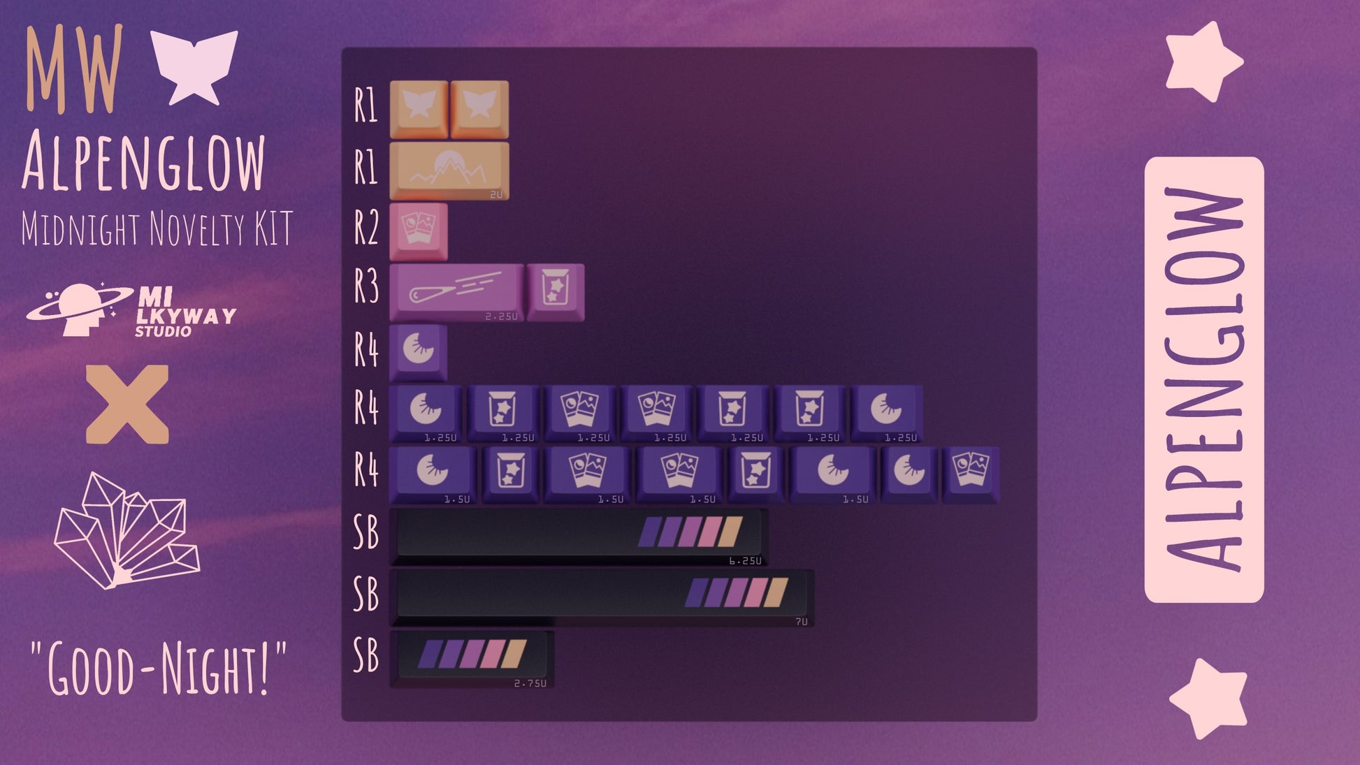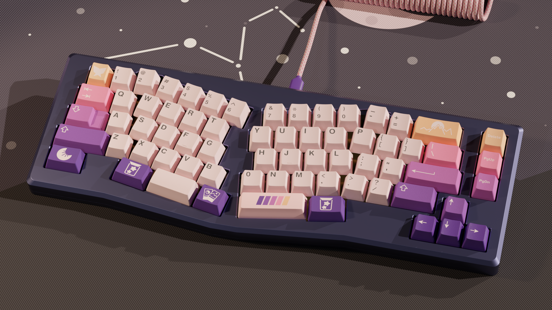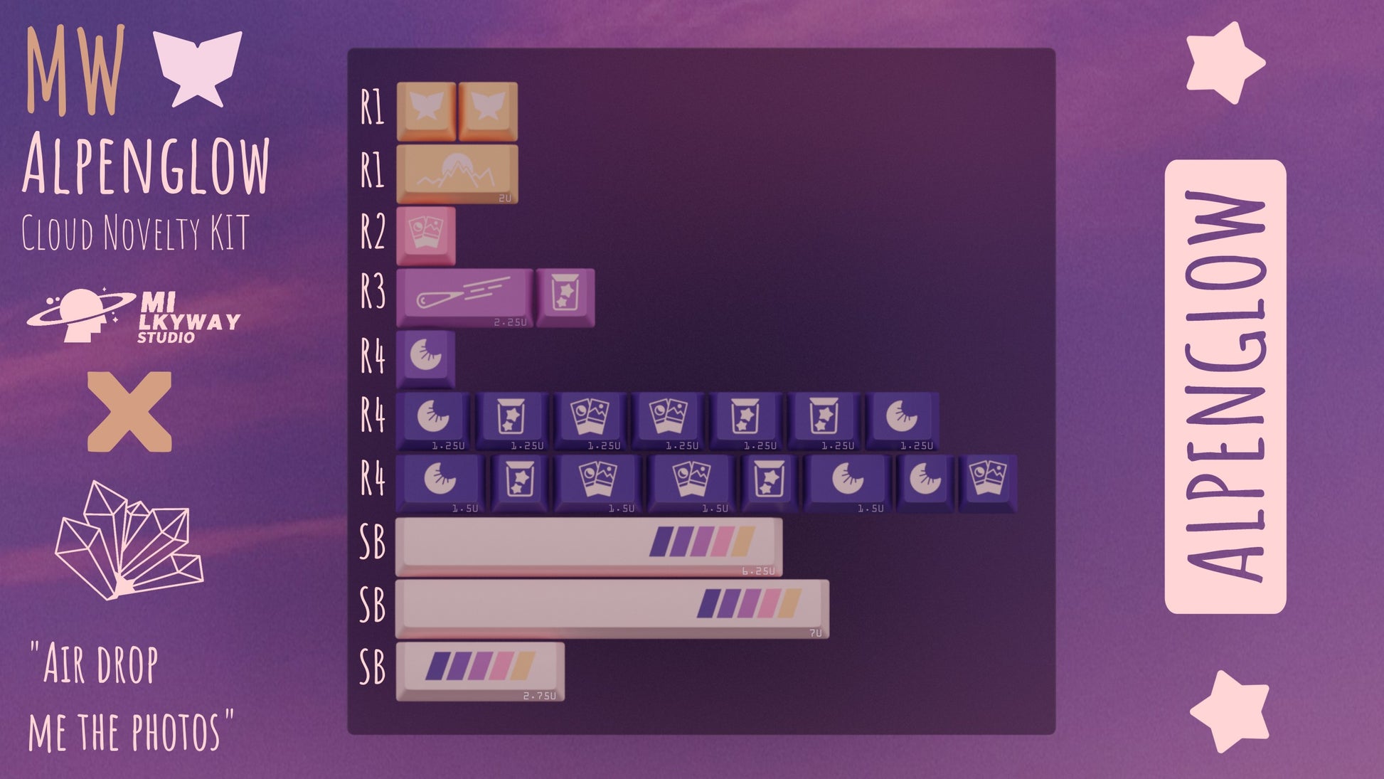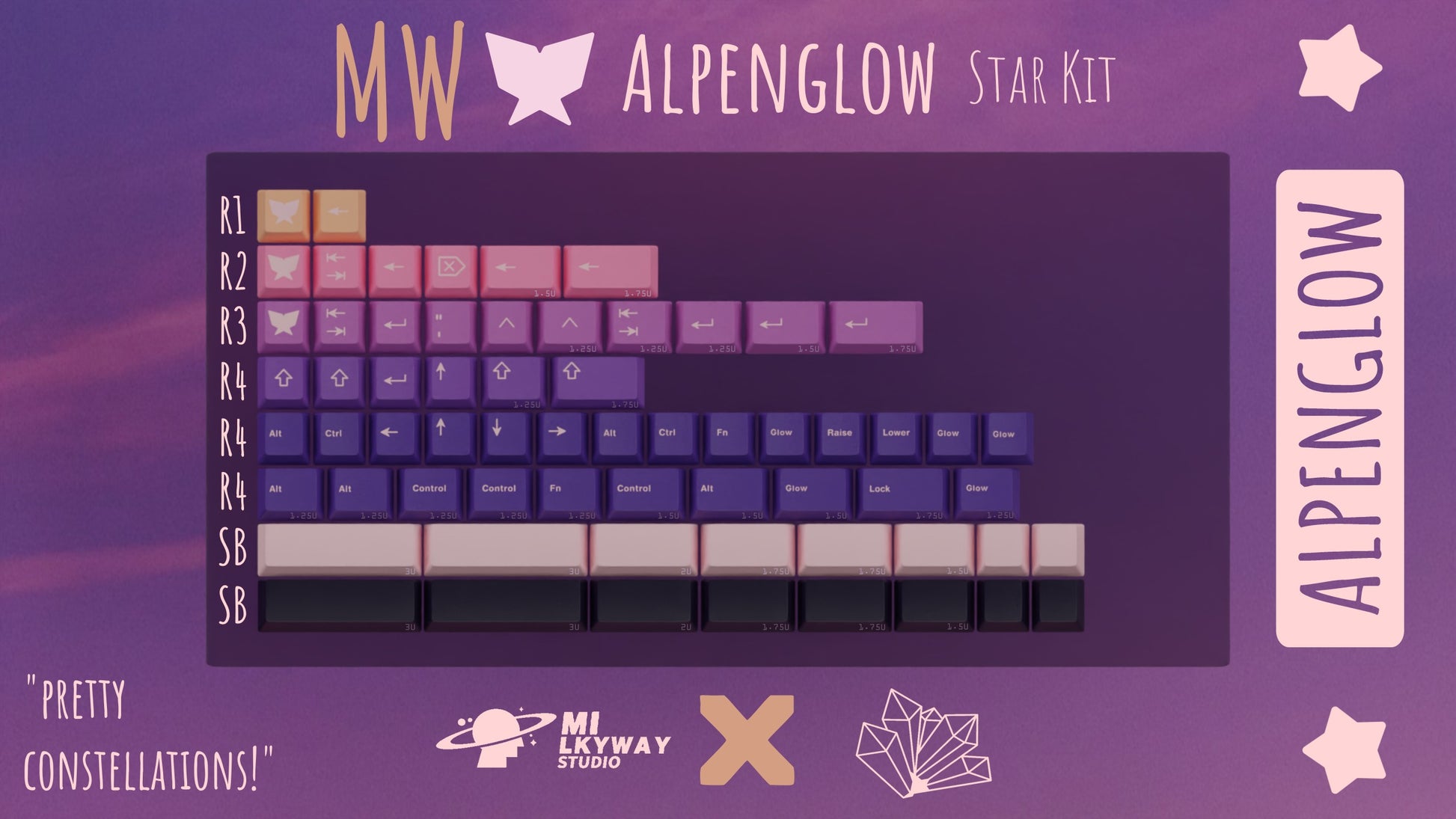 Inspired by the setting sun while on a camping trip, Alpenglow perfectly captures the beauty of a perfect sunset. MW Alpenglow features dye-sublimated PBT keycaps in the Cherry profile, with a gorgeous pink base color and a stunning sunset gradient on the modifiers.