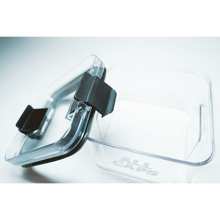 Featuring a subtle ALLCAPS branding hit on the side and a snap lock mechanism these tubs are exactly what you’ve been looking for. Stack em, put switches in em, fillem up with lube, put keycaps in them, use them to save your tears, whatever floats your boat.