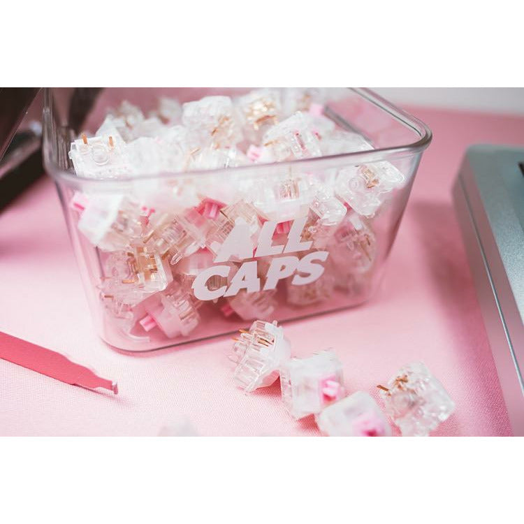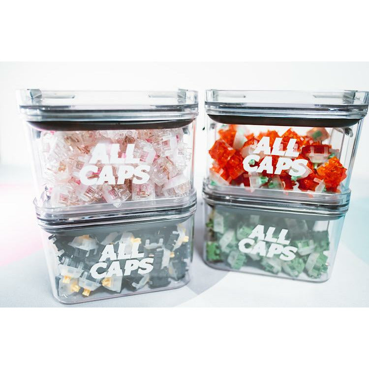 Clear, stackable, ALLCAPS branded tubs to warehouse your favourite switches and show them off to anyone who dares enter your room.